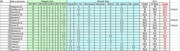 Также напоминаем про положение конкурса, а именно про пункт 4.4. В случае, если несколько участников набирают в сумме за два этапа одинаковое количество баллов, победителем будет признан участник, набравший большее количество баллов во втором этапе. В случае, если баллы полностью совпадают за оба этапа, тогда призовое место достается каждому участнику.